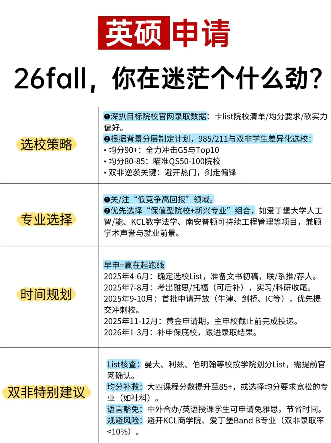 ▪️2025年9-10月:首批申请开放(牛津、剑桥、IC等),优先提交冲刺校。