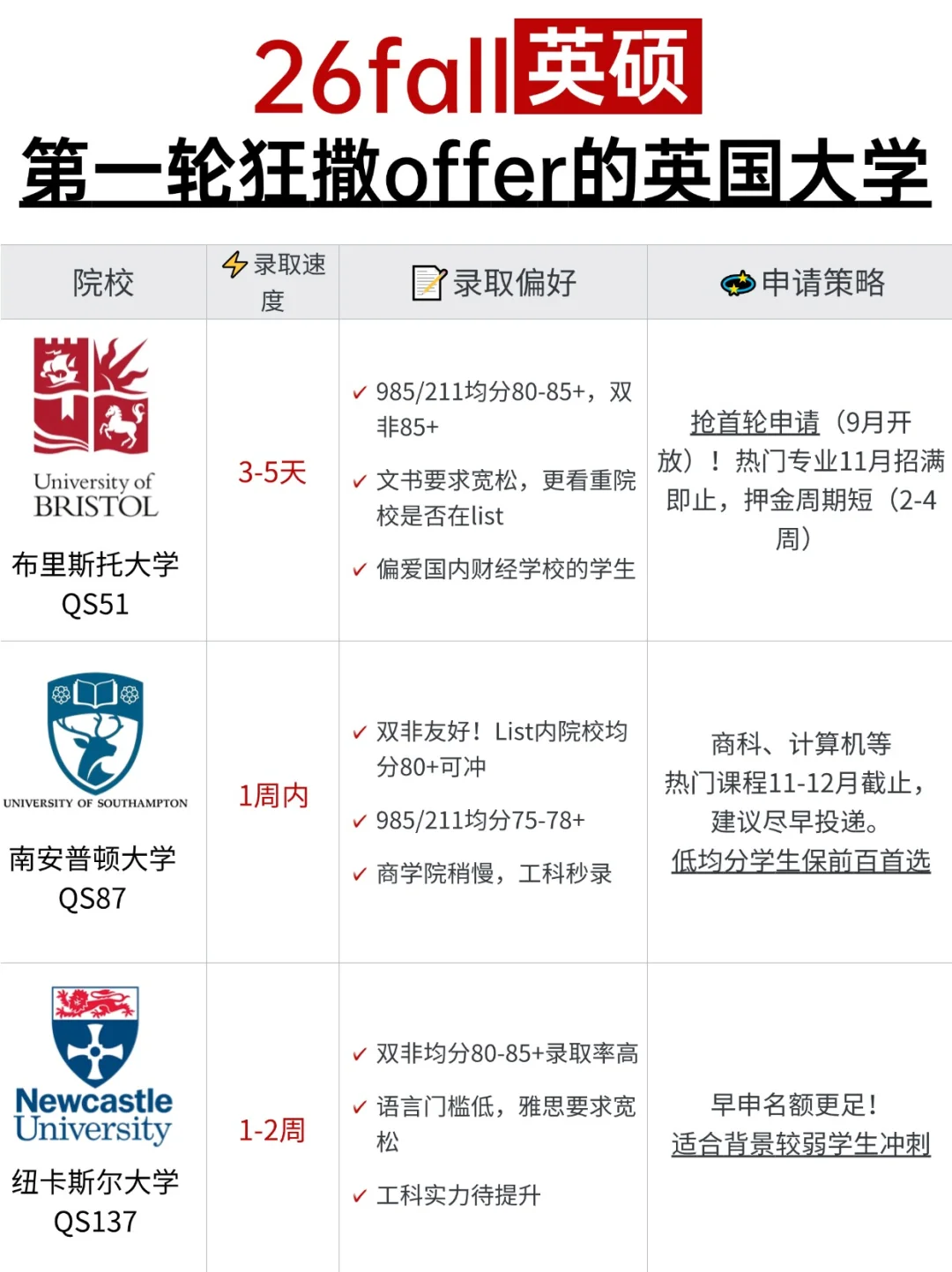 26fall这几所英国大学第一轮狂撒Offer!双非低分也能冲!