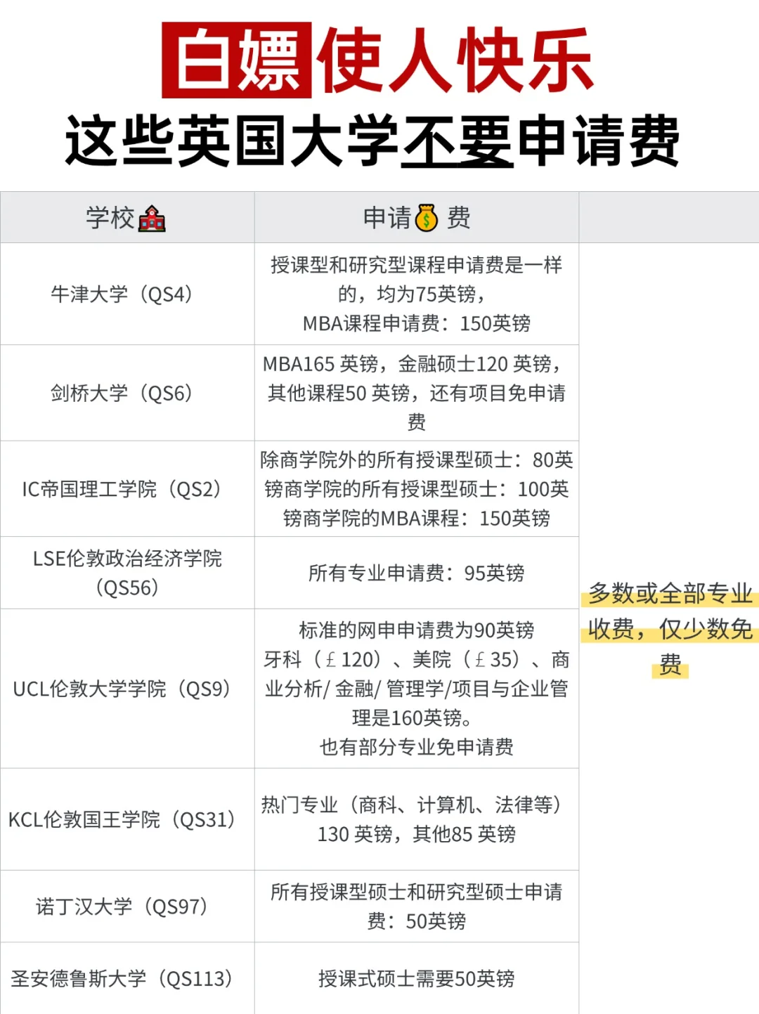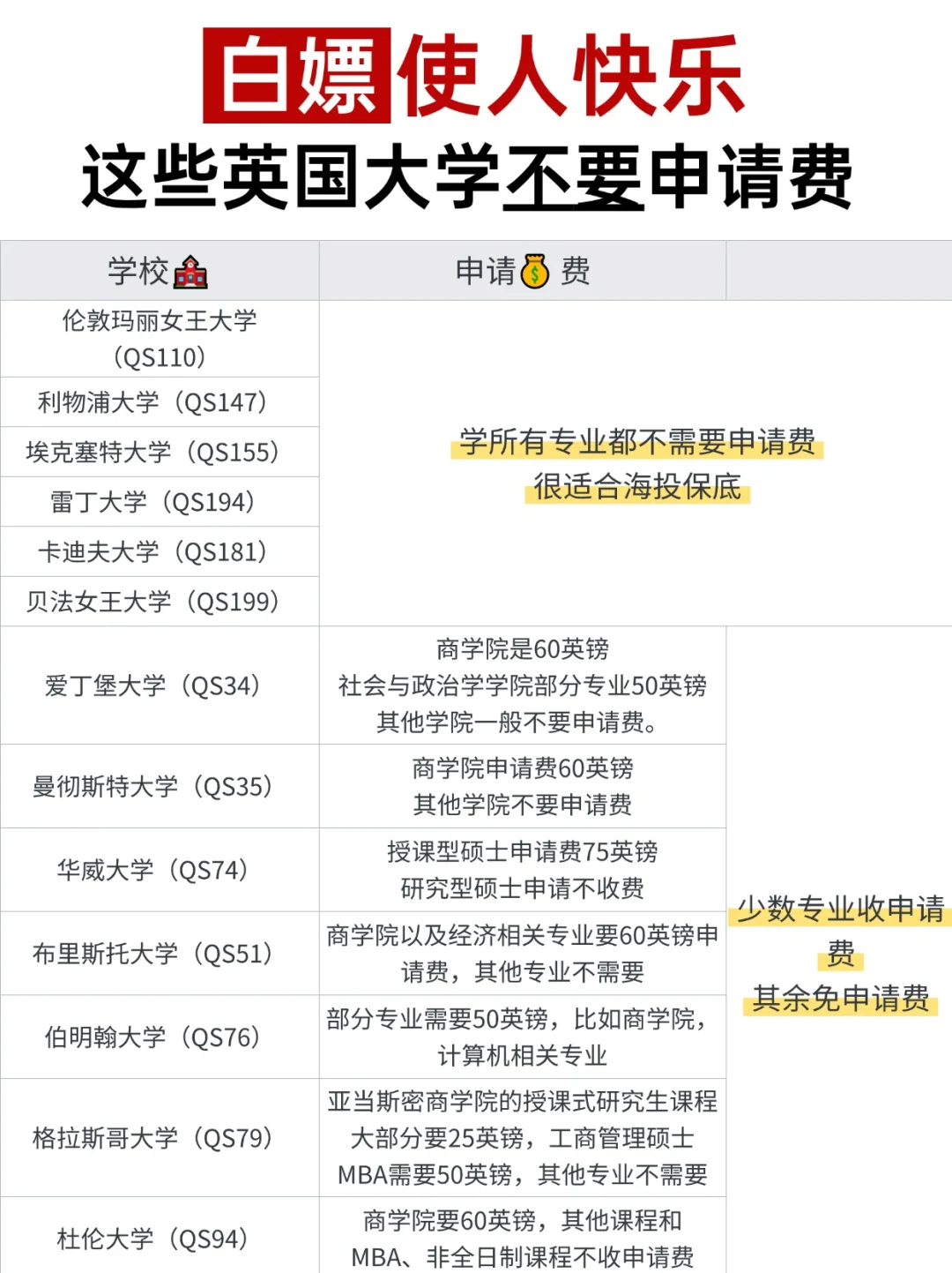 你才知道?这些英国大学不要申请费!