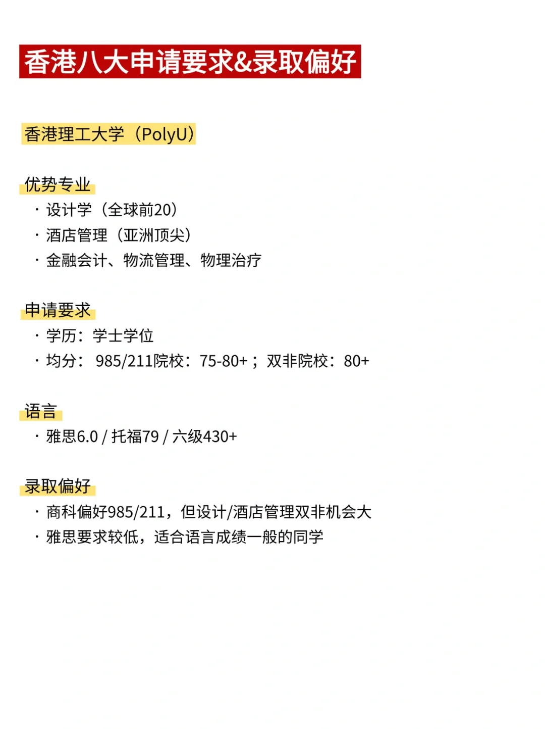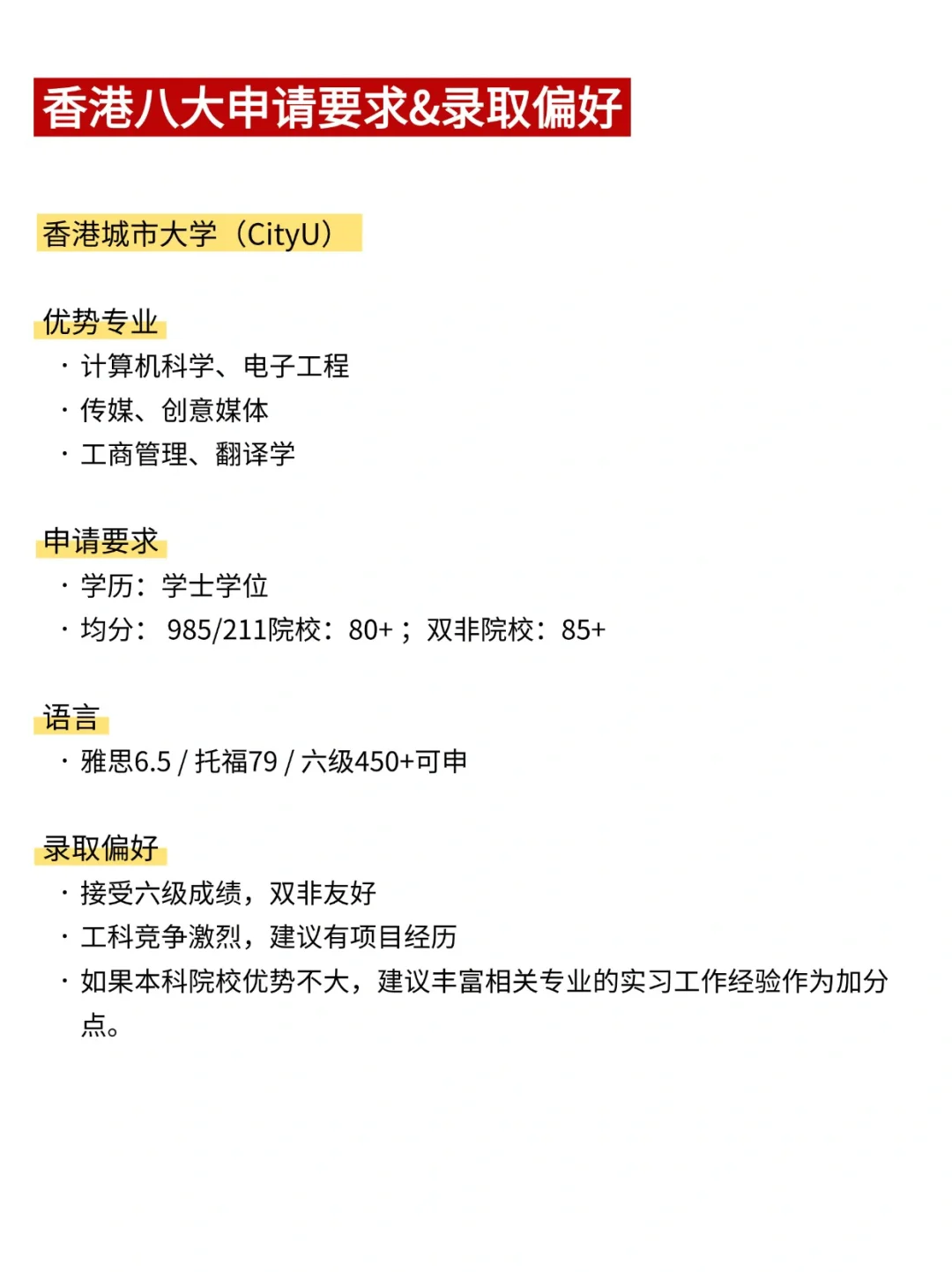 2.语言成绩:港前三建议雅思6.5+,城大/浸会可用六级申请。