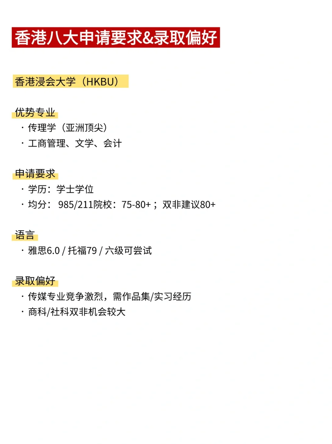 4.文书策略:不同学校偏好不同,港大重学术,科大重创新,浸会重实践。