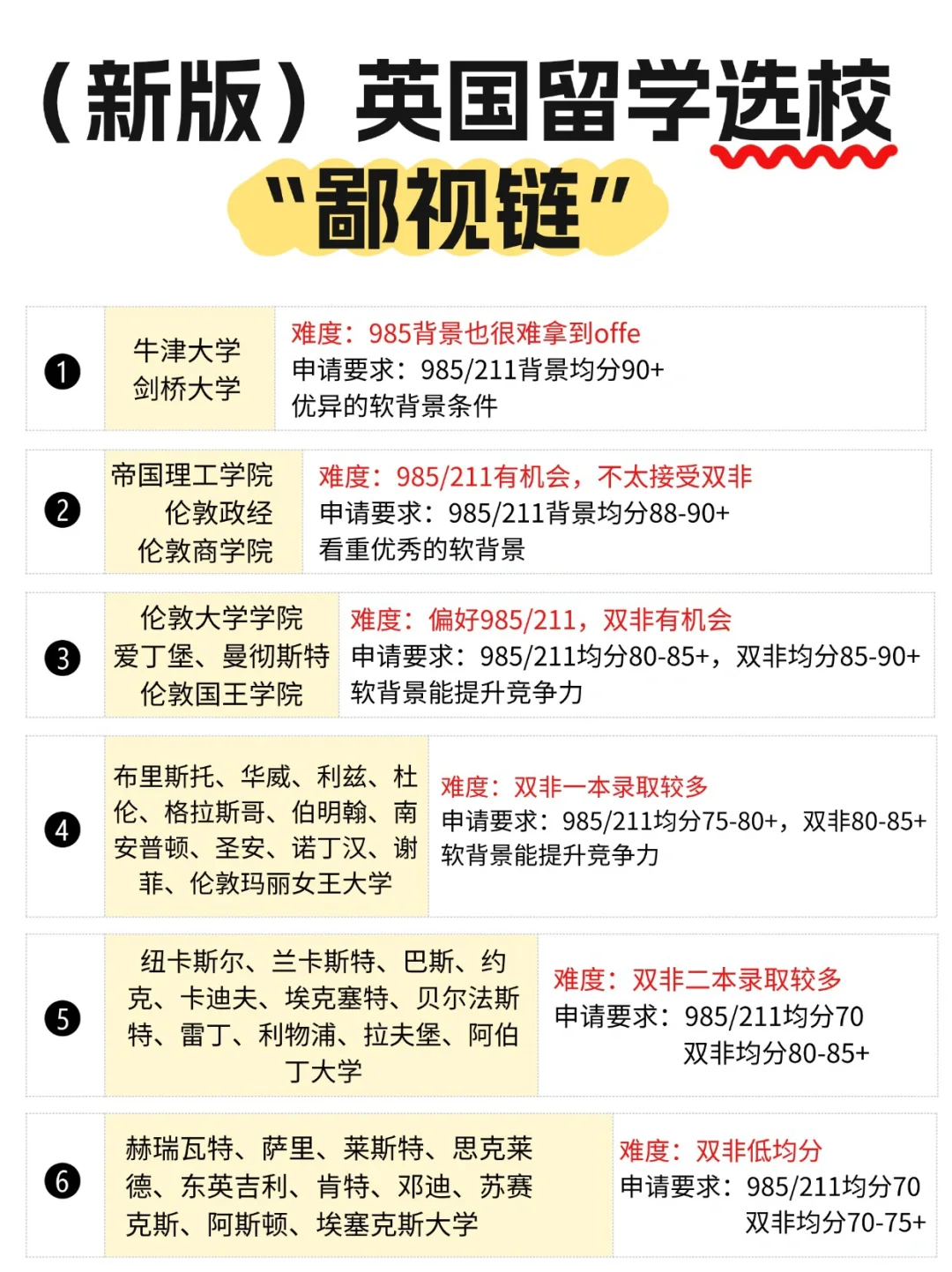 从学校到专业,留学“鄙视链”无处不在。不同层次,申请难度: