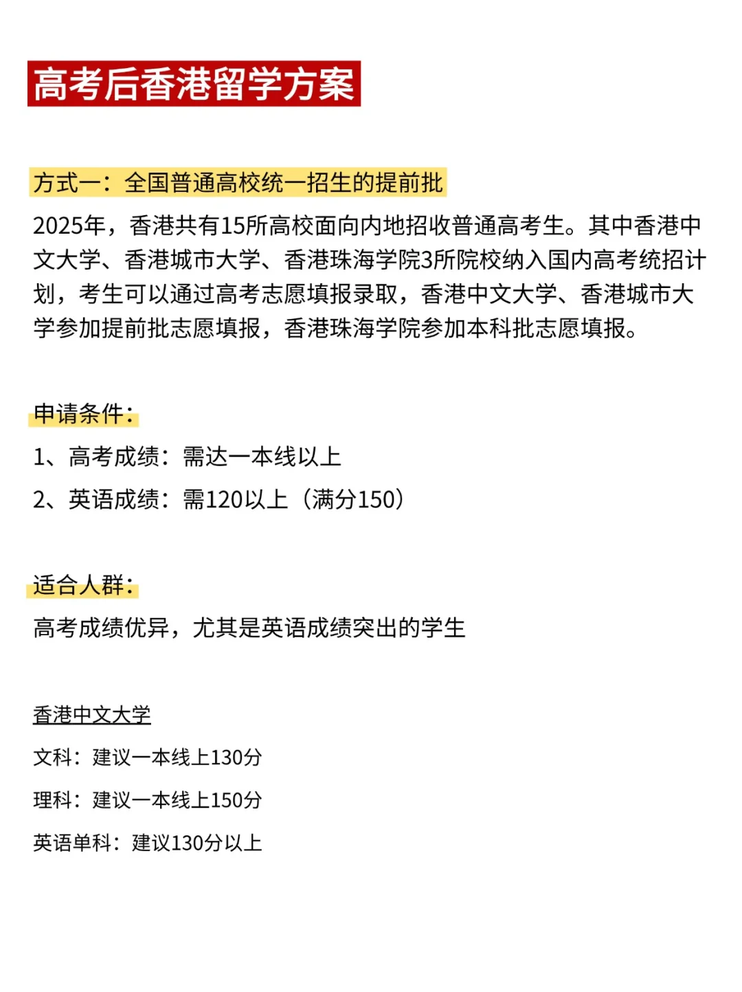 给大家总结了:高考后留学香港的三种方式