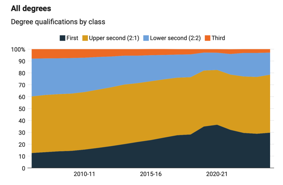 《泰晤士报》援引英国高等教育统计局的数据称:在24/25学年,英国大学里有30%的毕业生获得一等荣誉学位!