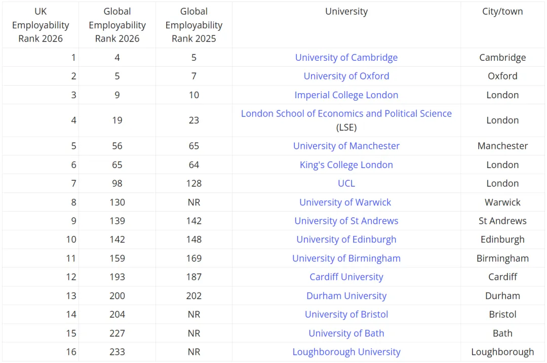 雇主视角|英国就业力大学排名,留学生择校必看!