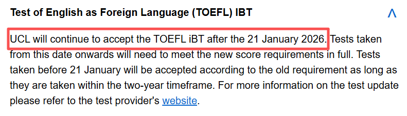 2026年1月21日前参加托福考试的同学,成绩将继续按照旧版托福与UCL既有换算体系进行评估。