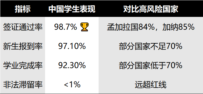 而在所有生源地中,中国一直是签证合规率最高、风险最低的群体之一。