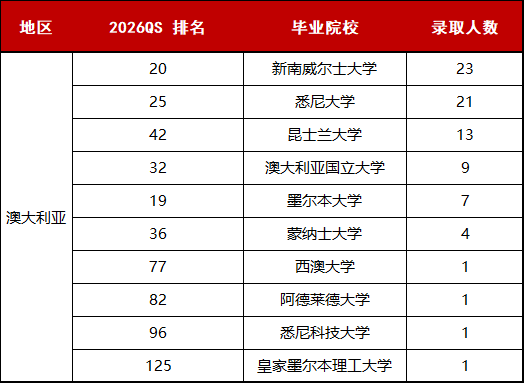 澳洲“八大”也全员入围,悉尼大学和新南威尔士大学录取超过20人!
