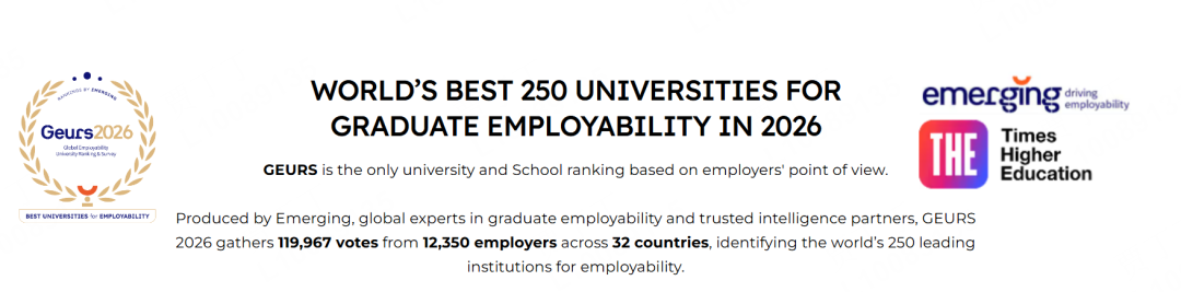 近日,泰晤士高等教育联合Emerging人力资源公司发布了26全球大学就业力排名。