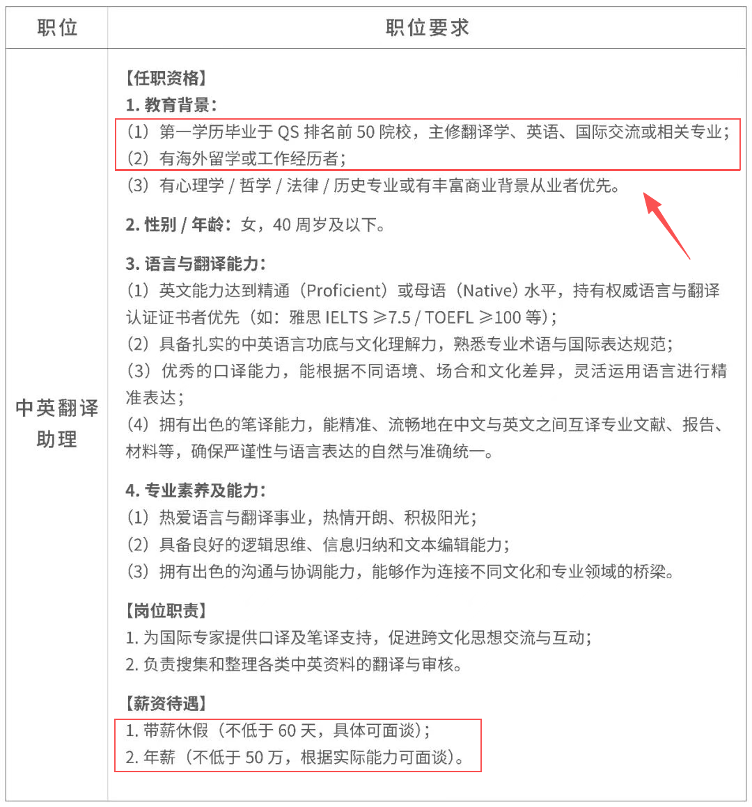 近日,胖东来商贸集团发布了【中英翻译助理】岗位,不仅开除年薪50万起,带薪年假60天+的待遇,更明确要求应聘者毕业于QS前50院校。