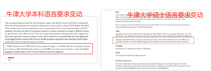 随后,牛津大学、格拉斯哥大学也宣布不接受新托福成绩。然而,最近剑桥大学对入学语言成绩的要求却出现了反转!