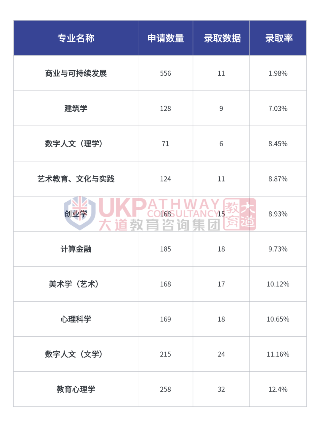 UCL录取率较高的专业大多数都属于比较精钻的专业,需要较强的专业背景。