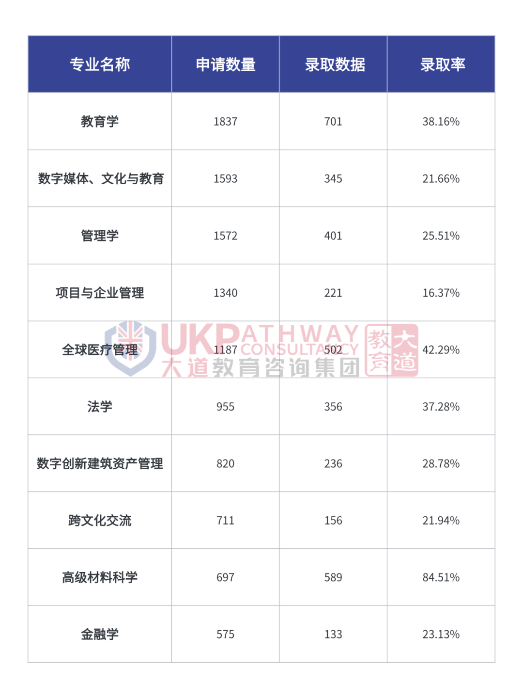 UCL中国学生申请量前三专业还是传统热门的教育、管理相关。